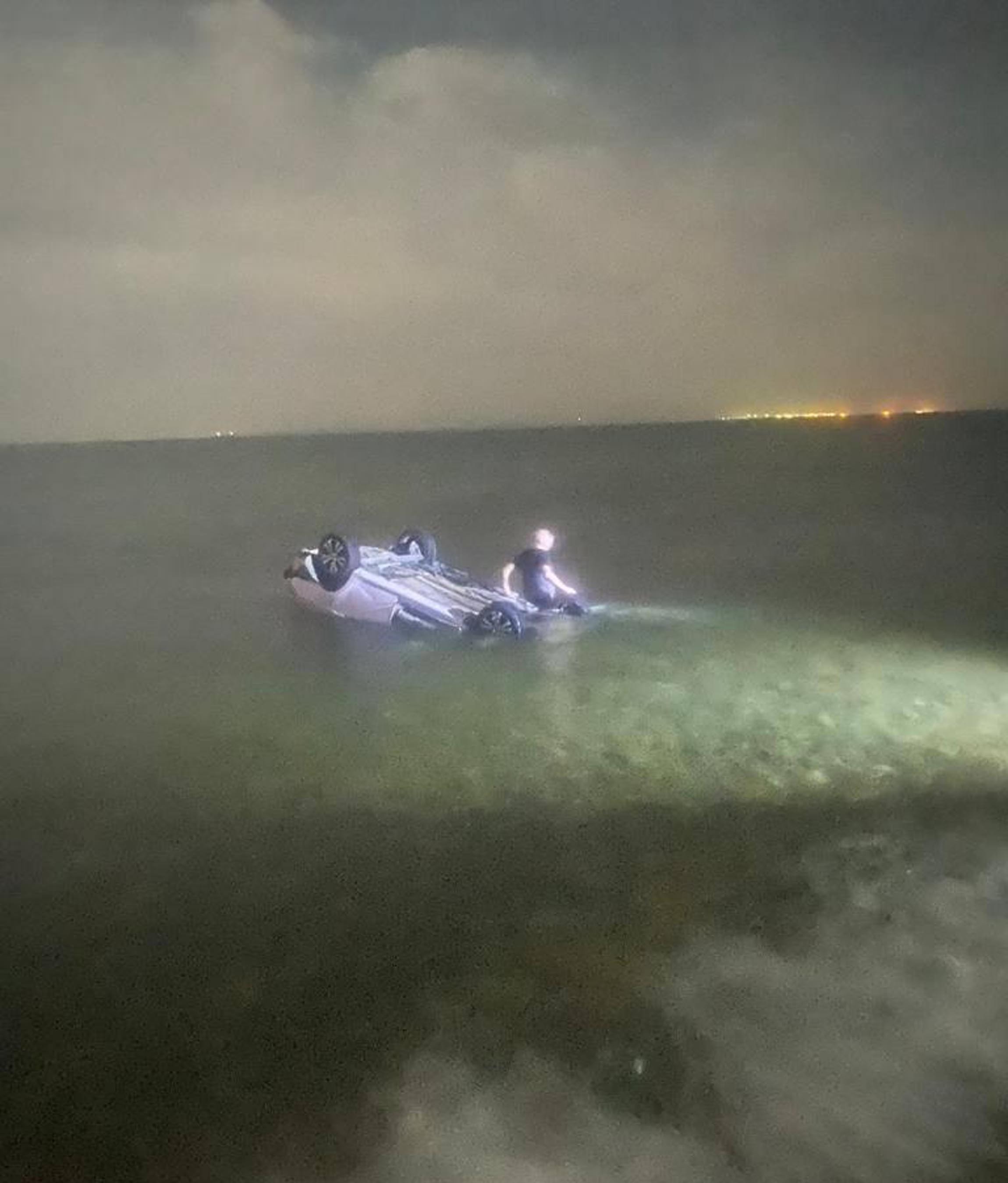 Denizde ters dönen otomobilde Ahmet Gürkan Erkutlu, kendi imkanlarıyla kurtulurken eşi ise hayatını kaybetti.