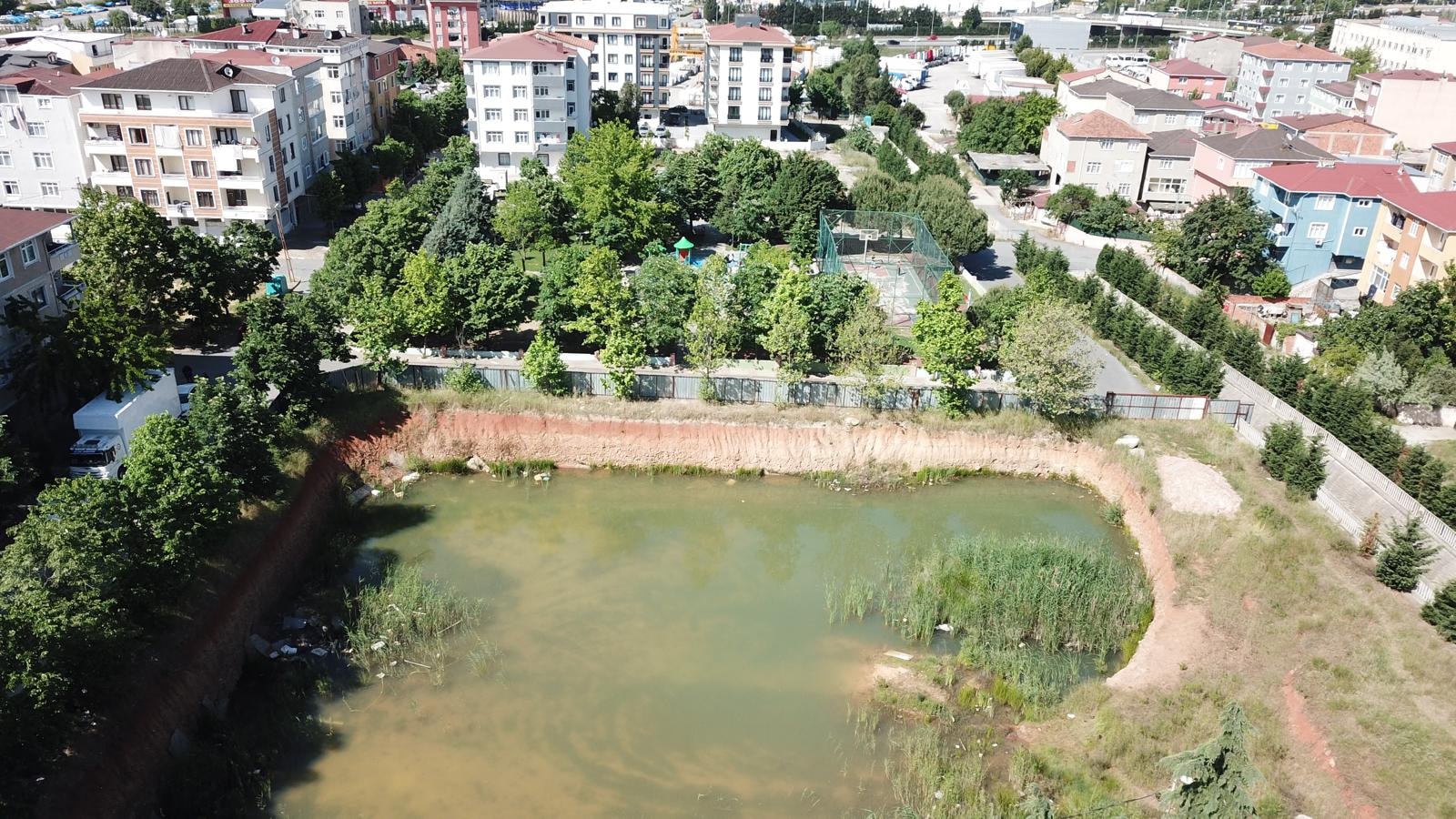 Görüntülerde çocukların su birikintisinde yüzdüğü anlar görülürken, görüntüyü çeken çevre sakini bu duruma, “Burası şantiye alanı. İçerisi bataklık su dolu. Çocuklar da burada yüzmeye çalışıyor” diyerek tepki gösteriyor. Su dolu alan havadan da görüntülendi. Görüntülerde etrafı sac levhayla kapalı olsa da, çocuklar zaman zaman suyla dolu inşaat temelinin buunduğu alana giriyor ve çevresinde oyun oynuyor. Çamurlu suyla dolu inşaat temeli tehlikeye davetiye çıkarıyor.