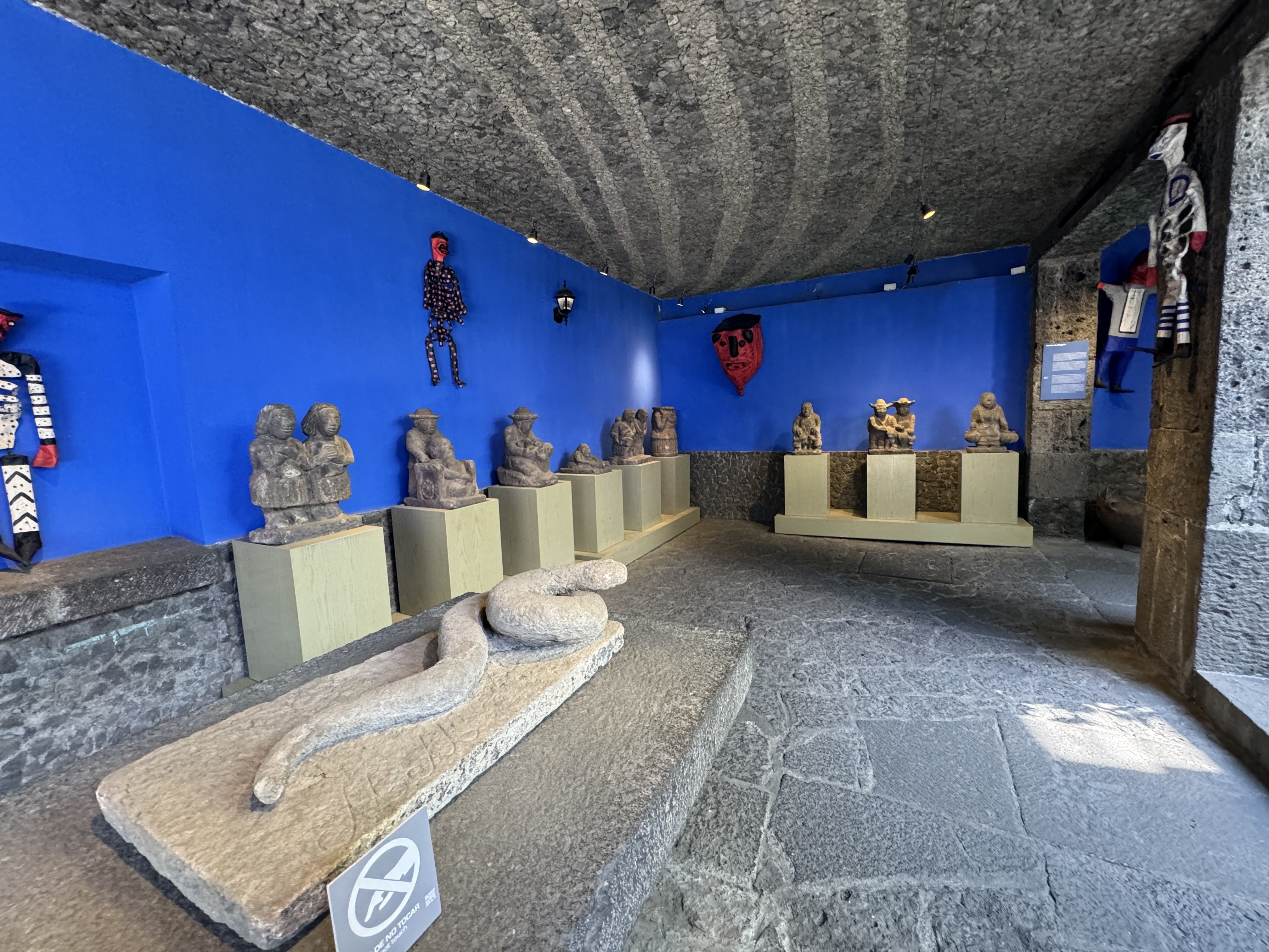 Kahlo’nun doğduğu, büyüdüğü, eşi Diego Rivera ile yaşadığı evde, Meksika halk sanatını yansıtan ürünler, Kahlo’nun kişisel sanat koleksiyonu, fotoğraflar, kartpostallar ve mektuplar ile ressamlar Jose Maria Velasco Gomez, Paul Klee ve Kahlo’nun kocası Diego Rivera’nın eserleri de yer alıyor.