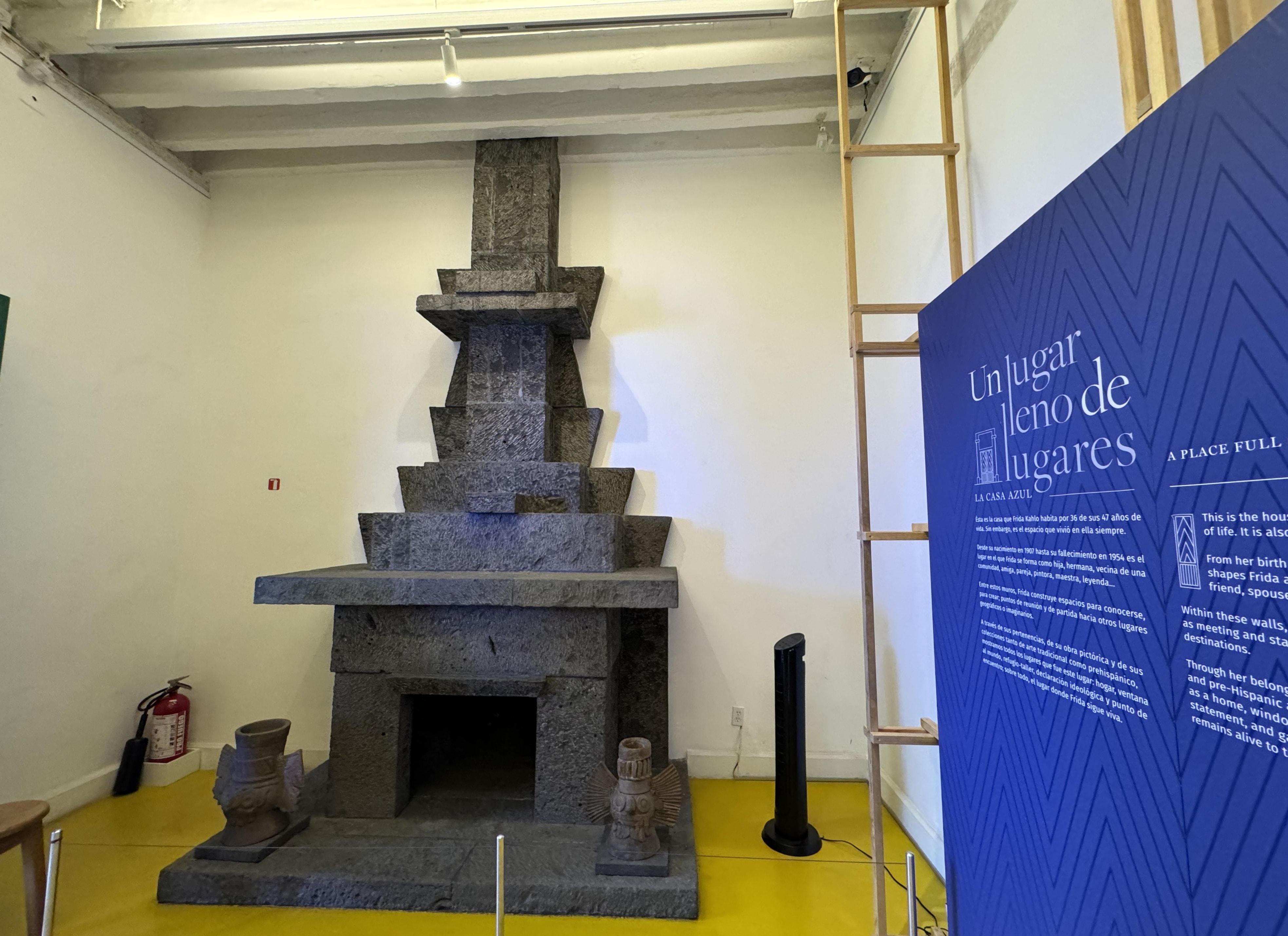 Kahlo’nun eşi Diego Rivera’nın kendisine hediye ettiği volkanik taşlardan yapılmış ayaklı şömine de müzenin girişinde yer alıyor. Aynı yerde, Kahlo’nun hasarlı omurgasını desteklemek için giymek zorunda kaldığı korseler de bulunuyor.
